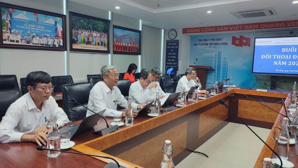 Sáng ngày 10.10.2025, Hội nghị đối thoại định kỳ năm 2025 của Công ty CP Thủy điện A Vương (AVC) đã diễn ra trong không khí nghiêm túc và cởi mở. Về phía đại diện Người sử dụng lao động có sự tham dự của ông Cao Huy Bảo – Tổng Giám đốc AVC, đại diện lãnh đạo các phòng, phân xưởng, trung tâm. Về phía đại diện tập thể Người lao động có ông Đoàn Noạc Nam – Chủ tịch Công đoàn cùng Ban Chấp hành Công đoàn và các thành viên đại diện người lao động tham gia đối thoại tại nơi làm việc.