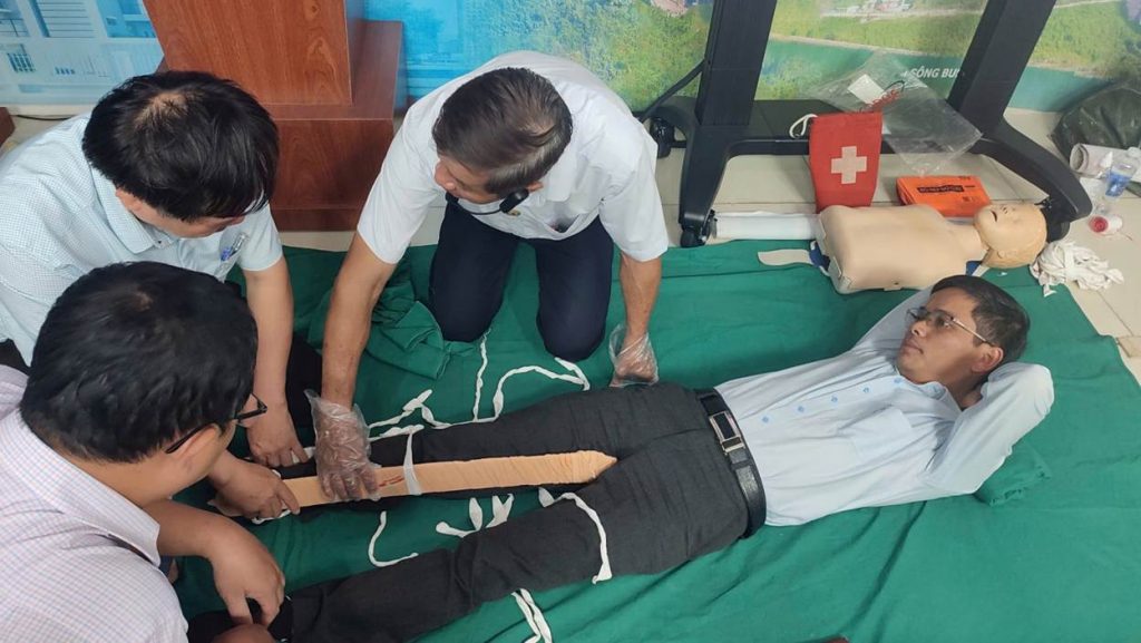 Đây là lớp huấn luyện định kỳ hàng năm về tập huấn sơ cấp cứu trong công ty, cũng như cho những năm tiếp theo giúp trang bị kiến thức, kỹ năng để cứu người và cứu chính bản thân mình khi xảy ra tai nạn..