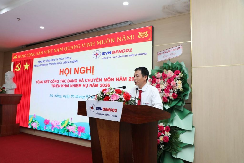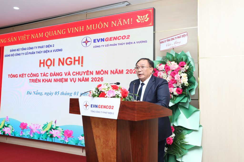 Phát biểu chỉ đạo tại Hội nghị, ông Trần Phú Thái – Bí thư Đảng ủy, Chủ tịch HĐQT EVNGENCO2 đánh giá cao những nỗ lực của Công ty đã đạt được trong năm 2025 và ghi nhận những đóng góp của AVC trong việc hoàn thành nhiệm vụ chung của EVNGENCO2. Đồng chí yêu cầu trong thời gian tới Công ty cần chủ động nghiên cứu, thực hiện các mục tiêu lớn gồm: Tiếp tục quản lý vận hành NMTĐ A Vương an toàn, hiệu quả; Thực hiện công tác đầu tư xây dựng, dự án mở rộng A Vương, dự án tích năng A Vương, sớm xây dựng hoàn thành Trụ sở Công ty; Đẩy mạnh công tác chuyển đổi số, ứng dụng khoa học công nghệ vào hoạt động sản xuất kinh doanh; Thực hiện tốt công tác môi trường đó là xu thế tất yếu trong những năm đến.